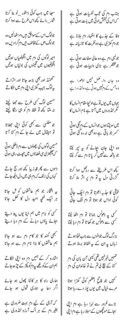 Janab Dum Ki Ajab Nafsiat Hoti Hai